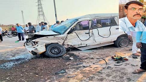 शिरढोण - रत्नागिरी- नागपूर राष्ट्रीय महामार्गावर अलकुड (एम) (ता. कवठेमहांकाळ) येथील गावानजीक पुलावर तिहेरी झालेल्या अपघातात चारचाकी वाहनांमधील एकजण जागीच ठार तर सातजण गंभीर जखमी झाले आहेत. गजानन रामचंद्र सपकाळ रा. अलकुड (एम) जागीच ठार झालेल्यांचे नाव आहे. हा अपघात शनिवार दुपारी साडेतीन वाजण्याच्या दरम्यान घडला असून याची नोंद कवठेमहांकाळ पोलिसांत झाली आहे. याबाबत पोलिसांतून समजलेली अधिक माहिती अशी की गजानन सपकाळ हे चारचाकी क्रमांक एम. एच.०९ डी. एक्स.(१०२२) शिरढोणहुन मिरजकडे निघाले होते. दरम्यान अलकुड एम (ता. कवठेमहांकाळ) येथील पुलावर आले असता सपकाळ यांच्या गाडीचा पुढील टायर फुटल्याने स्टेरिंगवरील ताबा सुटल्याने दुभाजक वरून मिरजहून कवठेमहांकाळ पोलीस ठाण्याचे पोलीस उपनिरीक्षक नामदेव दांडगे व त्यांच्या पत्नी चारचाकी क्रमांक (एम.एच.१३ डी. टी.४०४४) मधून कवठेमहांकाळकडे येत होते. यावेळी त्यांच्या वाहनावर जाऊन आदळली याच दरम्यान मिरजहून नागजकडे जात असलेली मोटारसायकल क्र. (एम.एच. १० डी. एच. ५१६७) ही अपघात झालेल्या वाहनावर पाठीमागून जाऊन आदळली. यात झालेल्या तिहेरी अपघातात अलकुड (एम) येथील गजानन रामचंद्र सपकाळ हे जागीच ठार झाले.