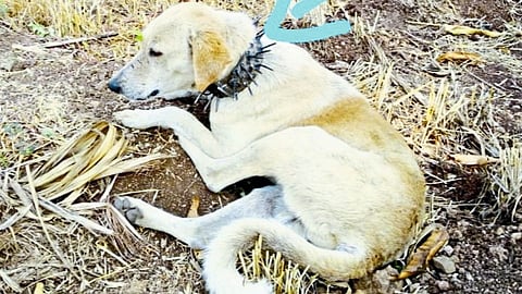 शिराळा : अंत्री बुद्रुक (ता. शिराळा, जि. सांगली ) येथील भूषण पाटील या तरुणाने कुत्र्याचा बिबट्यापासून बचाव करण्यासाठी लोखंडी पट्टीला खिळे बसवून गळ्यात बांधण्यासाठी पट्टा तयार केला आहे. त्यामुळे कुत्र्याचा बिबट्यापासून बचाव होईल. त्याच्या या गावठी जुगाडाची चर्चा सर्वत्र सुरू आहे.