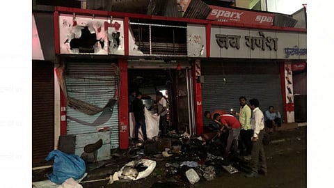 मंगळावारी रात्री दुकान बंद केल्यावर दुकानाचे मालक घरी जात असताना दुकानाच्या नाम फलकामधून धूर येत असल्याची माहिती काही नागरिकांनी दिली. मात्र हा धूर पसरून चार दुकानाच्या नाम फलकांमधून बाहेर पडत असल्याने नेमकी आग कोठे लगली हे कळत नव्हते. तेव्हा दुकान मालकांनी दुकानाच्या नावाचे फलक फोडले तेव्हा ही आग आर. जे. फॅशन या दुकानाच्या नाम फलकांमधून येत असल्याचे कळले. त्या वेळी दुकानदारांनी खाली दुकानामध्ये असणारे कपडे तातडीने दुकानाच्या बाहेर काढली. त्यामुळे मोठे आर्थिक नुकसान टळले.