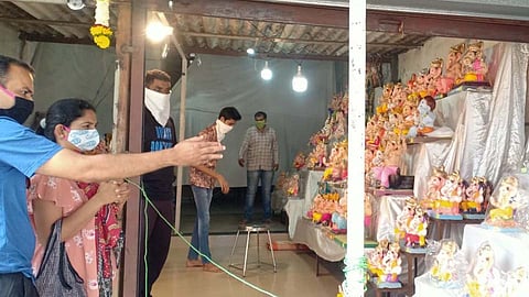 भोसरीतील पीएमटी चौक, राजमाता जिजाऊ उड्डाणपूलाखाली गणेशमूर्ती विक्रीसाठी उपलब्ध आहेत. प्लॅस्टर ऑफ पॅरिससह शाडू मातीच्या अर्धा ते चार फुटांपर्यंत उंचीच्या मूर्त्या पहायला मिळत आहेत. पीएमटी चौक, आळंदी रस्ता, दिघी रस्ता, स्पाइन रस्त्यावरील जयगणेश चौक, इंद्रायणीनगरातील मिनी मार्केट, श्री तिरुपती बालाजी चौक आदी परिसरात दरवर्षी गणपती विक्रीसह विविध सजावटीच्या साहित्याचे स्टॅाल लावले जातात. या ठिकाणी भाविक गणेशमूर्ती घेण्यासाठी प्रचंड गर्दी करतात. मात्र, यंदा आळंदी रस्त्यावरील एक स्टॅाल वगळता इतर ठिकाणी अद्यापही स्टॅाल उभारलेले नाहीत. कोरोनामुळे प्रशासनाने दुकानदारांना विविध नियमावली घालून दिली आहेत. त्यामुळे या चौकात स्टॅालला परवानगी मिळते का, ते पहावे लागेल. भोसरी पोलिस ठाण्याचे वरिष्ट पोलिस निरीक्षक शंकर अवताडे यांनी सांगितले, की सरकारने गणेशोत्सवाविषयी विविध नियमावली तयार केली आहे. मात्र, याचा आध्यादेश आमच्यापर्यंत अद्याप आलेला नाही. तो मिळाल्यावर गणपती मंडळांच्या पदाधिकाऱ्यांची सोशल मीडियाद्वारे सभा घेऊन जनजागृती करण्यात येईल.