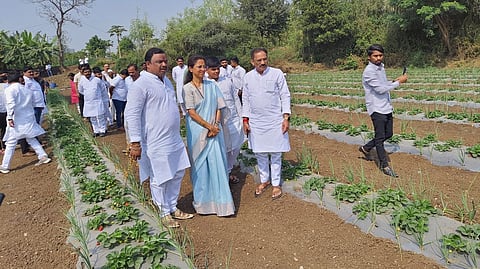 स्ट्रॉबेरी शेतीची पाहणी करत त्यांनी बांधावरच शेतकऱ्यांशी संवाद साधला सुळे बुधवारी मुळशीच्या दौऱ्यावर होत्या. दौऱ्याची सुरवात त्यांनी हिंजवडीतील स्ट्राबेरी शेतीची पाहणी करून केली. हिंजवडीचे माजी सरपंच मल्हारी साखरे यांनी मुळा नदीकाठच्या शेतीत घेतलेल्या स्ट्राबेरी पिकाची व सेंद्रीय फळबागेची पाहणी केली.