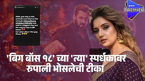 ४ नोव्हेंबरच्या भागात विवियनने घरातील चहा पावडर जप्त केली कारण सारा अरफिन स्वतःसाठी चहा बनवून घेत होती. त्याच्या या अशा वागण्यावर रुपालीने टीका केलीये. रुपालीने इन्स्टाग्राम स्टोरीवर पोस्ट शेअर केली आहे. या पोस्टमध्ये तिने ‘बिग बॉस’च्या १३'व्या पर्वाचा विजेता दिवंगत सिद्धार्थ शुक्लाचा उल्लेख केलाय. तिने सिद्धार्थचं उदाहरण देत विवियनवर टीका केलीये. तिने लिहिलं, 'अरे देवा विवियन डिसेनासारखी ही अहंकारी वृत्ती का आहे? आणि इतका अहंकार का आहे? सिद्धार्थ शुक्ला हासुद्धा मोठा अभिनेता होता आणि आहे. त्याचा ‘बिग बॉस’चा ज्याप्रकारे प्रवास होता, तो खूप भारी होता. पण, विवियनचं काय?'