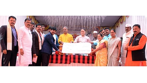 माजी गृहमंत्री दिलीप वळसे पाटील, माजी खासदार शिवाजीराव आढळराव पाटील व भारतीय विमा महामंडळाचे पुणे विभागाचे विक्री व्यवस्थापक बाळासाहेब केकरजवळेकर यांच्या हस्ते सरपंच स्वरूपा गावडे व उपसरपंच स्नेहल गावडे यांच्याकडे धनादेश सुपूर्त करण्यात आला. यावेळी भारतीय विमा महामंडळाचे नारयणगाव येथील शाखा अधिकारी सुधीर कांत, उपशाखा अधिकारी आनंद ठाकूर, विकास अधिकारी सचिन भोसले, विष्णू हिंगे, देवदत्त निकम, ज्ञानेश्वर गावडे, देवराम गावडे व जगदीश पिंपळे उपस्थित होते.
