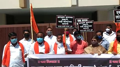 पुणे - केंद्र सरकारने मराठा आरक्षणाबाबत सर्वोच्च न्यायालयात योग्य बाजू मांडावी. सर्वोच्च न्यायालयातील आरक्षणावरील स्थगिती उठवून न्याय द्यावा, या मागणीसाठी मराठा संघटनांच्या वतीने मंगळवारी केंद्रीय मंत्री प्रकाश जावडेकर यांच्या घरासमोर संबळ बजाव आंदोलन करण्यात आले. मराठा आरक्षणाचा प्रश्न न सोडविल्यास केंद्र आणि राज्य सरकार होणाऱ्या परिणामांना जबाबदार राहील, असा इशारा आंदोलनकर्त्यांनी दिला.