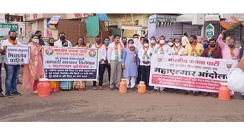 यावेळी "शेतकरी एकजुटीचा विजय असो" अशा घोषणा देवून आघाडी सरकारचा निषेध करण्यात आला. आंदोलनात युवा मोर्चा अध्यक्ष सचीन हांडे, कार्याध्यक्ष व्यंकोजी खोपडे, मंगेश जाधव, राहुल शेवाळे, राज पुरोहित, वैशाली पवार, संदिप हरपळे, सूरज बिरे, आकाश पवार, संदिप परदेशी, वैभव ढेकणे, संजय यादव, शिवाजी शेवाळे, महेश भाडळे आदी कार्यकर्ते उपस्थित होते. आंदोलनावेळी सॅनिटायझरचा वापर करून मास्क व सोशल डिस्टन्सचे काटेकोर पालन करण्यात आले.