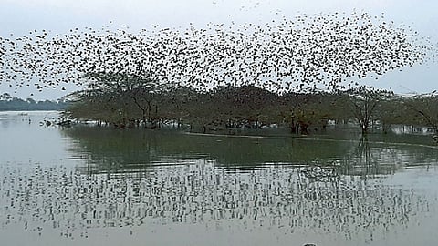 कळस - युरोपातून सुमारे पाच हजार किलोमीटरचा प्रवास करून उजनी जलाशय परिसरात आलेल्या आलेले भोरड्या पक्ष्यांची सायंकाळच्या वेळी आकाशात चालणारी मनमोहक कवायत पाहण्यासाठी पक्षी निरीक्षकांसह ग्रामस्थ गर्दी करत आहेत.