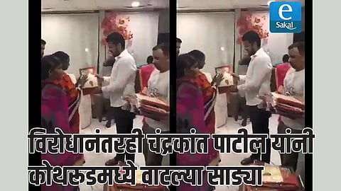 कोथरूडमधून पाटील नुकतेच विजयी झाले आहेत. त्यांनतर मतदारसंघातील सुमारे दहा हजार महिलांना साड्या देण्याच्या उद्देशाने त्यांनी हा उपक्रम हाती घेतला. मात्र, त्यांवरून वाद निर्माण झाला ,अशा प्रकारे साड्या वाटाण्याला मनसेने विरोध केला. मनसेचे पराभूत उमेदवार किशोर शिंदे आणि विभाग सुधीर धावडे यांनी तीव्र विरोध केला. पाठोपाठ आपनेही सुनावले. मात्र, बालवकडर यांनी प्रभागातील माहिलांना साड्या दिल्या. त्यावर पाटील यांचे छायाचित्र आहे.
