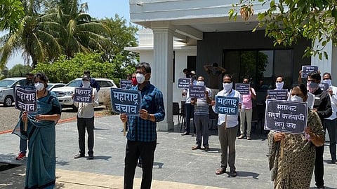 जेजुरी : जेजुरी शहर भारतीय जनता पक्षाच्या वतीने नंदी चौकात महाराष्ट्र बचाव आंदोलन करण्यात आले. या आंदोलनात राज्य सरकारचा निषेध करण्यात आला. जेजुरीत भाजप जिल्हाध्यक्ष गणेश भेगडे यांच्या मार्गदर्शनाखाली जेजुरी शहर भारतीय जनता पार्टीच्या वतीने जेजुरी शहर खंडोबा गडाच्या पायथ्याशी नंदी चौकात महाराष्ट्र बचाव आंदोलन करण्यात आले. या आंदोलनामध्ये या निष्क्रिय राज्य सरकारचा तीव्र शब्दांमध्ये निषेध करण्यात आला. विषाणूंचा प्रादुर्भाव महाराष्ट्रात दिवसेंदिवस वाढत आहे. कोरोनाचा प्रादुर्भाव रोखण्यात सरकार अपयशी ठरल्याचा आरोप करीत आंदोलन करण्यात आल्याचे शहराध्यक्ष सचिन पेशवे यांनी सांगितले. यावेळी जेजुरी शहराध्यक्ष सचिन पेशवे, तालुका महिला अध्यक्षा अलका शिंदे, माजी सरचिटणीस प्रसाद अत्रे, राहुल झगडे, युवा नेते गणेश भोसले व कार्यकर्ते उपस्थित होते.