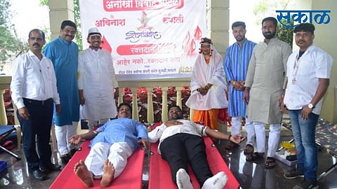 या विवाहात स्व. एकनाथकाका जगताप प्रतिष्ठानचे संतोष जगताप यांच्या संकल्पनेतून हा अनोखा रक्तदान सोहळा संपन्न झाला. यावेळी वधू-वराकडील २६ जणांनी रक्तदानाचा हक्क बजावला.