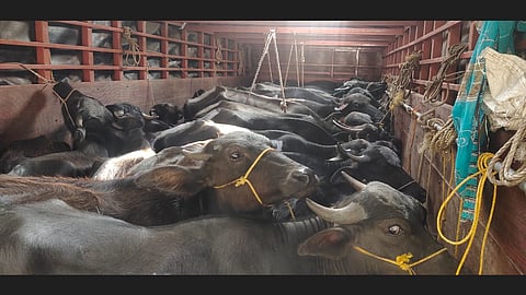 सहा वाहनांतून जनावरे कत्तलीकरता घेऊन जात असताना सामाजिक कार्यकर्त्यांनी पकडली.