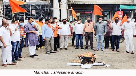 शिवसेनेचे उपनेते माजी खासदार शिवाजीराव आढळराव पाटील यांच्या मार्गदर्शना खाली मंचर (ता. आंबेगाव) छत्रपती शिवाजी महाराज चौकात कर्नाटकचे मुख्यमंत्री येडीरुप्पा यांच्या पुतळ्याचे दहन करण्यात आले.