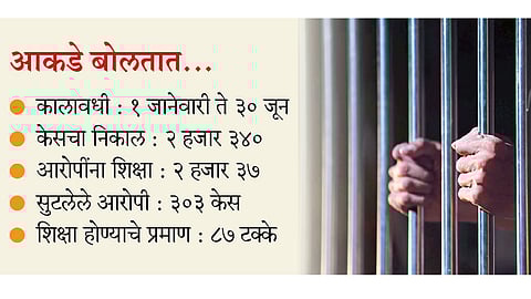 स्वतंत्र पोलिस आयुक्तालय स्थापन झाल्यापासून गुन्हे दाखल होण्याचे प्रमाण वाढले असतानाच, तपासालाही वेग आला आहे. १ जानेवारी ते ३० जून २०१९ या कालावधीत २ हजार ३४० प्रकरणांचा निकाल लागला. त्यापैकी २ हजार ३७ प्रकरणांत गुन्हा सिद्ध होऊन आरोपींना शिक्षा झाली. उर्वरित ३०३ प्रकरणांमधील आरोपी सुटले. आरोपींना शिक्षा होण्याचे हे प्रमाण ८७ टक्के आहे.