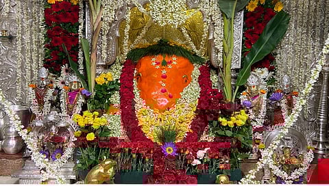 तळेगाव ढमढेरे (पुणे) : शिरूर तालुक्यातील रांजणगाव गणपती येथील महागणपती मंदिराचा मुख्य गाभारा व मंदिर परिसरात आज संकष्ट चतुर्थीनिमित्त मोगऱ्याची सव्वा लाख फुले व इतर फुलांनी आकर्षक सजावट करण्यात आली होती. कोरोनामुळे नागरिकांनी महागणपतीचे दर्शन सोशल मीडियावर घेऊन समाधान व्यक्त केले.