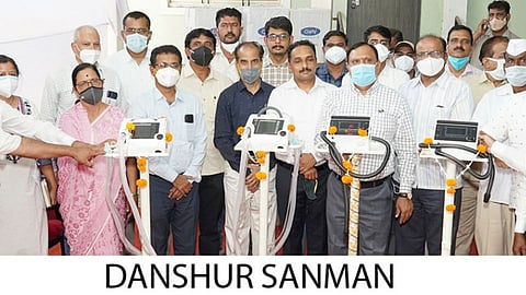 मंचर( ता. आंबेगाव) येथील उपजिल्हा रुग्णालयात अवसरी खुर्द कोविड जम्बो सेंटरसाठी व्हेंटिलेटर व मॉनिटर लोकार्पण सोहळा झाला. यावेळी शरद बँकेचे अध्यक्ष देवेंद्र शहा, बाजार समितीचे सभापती देवदत्त निकम, तहसीलदार रमा जोशी, गटविकास अधिकारी जालिंदर पठारे, मंचर उपजिल्हा रुग्णालयाचे वैद्यकीय अधीक्षक डॉ अंबादास देवमाने, डॉ सुदाम खिलारी, मोरडे फुड्सचे बाळासाहेब मोरडे, पराग पतसंस्थेचे अध्यक्ष जितेंद्र बांगर, श्री गणेश इंजिनिअरिंगचे चंद्रकांत घोडेकर, मंचरचे उपसरपंच युवराज बाणखेले, अवसरी खुर्दचे सरपंच जगदीश अभंग, खडकीचे सरपंच कृष्णा भोर, रितेश माने, जगदीश घिसे, सरस्वती शिंदे, अशोकराव निघोट, यांच्यासह प्रमुख मान्यवर उपस्थित होते. दानशूरांचा सन्मान करण्यात आला.
