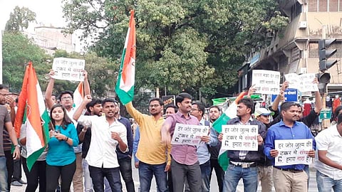 "मोदी सरकार हाय हाय...', "अमित शहा हाय हाय...', "देवेंद्र फडणवीस हाय हाय...', "संघ, भाजप हाय हाय', "होश में आवो, होश में आवो... मोदी सरकार होश में आवो...', "शिक्षण आमच्या हक्काचे, नाही कोणाच्या बापाचे...', "जेएनयूतील शुल्कवाढ रद्द झालीच पाहिजे...', "विद्यार्थ्यांना न्याय मिळालाच पाहिजे...', "हर जोर जुल्म की, टक्कर में संघर्ष हमारा नारा है...', अशा घोषणा देण्यात आल्या. कॉंग्रेस, एनएसआययू, राष्ट्रवादी कॉंग्रेस, मनसे, युवक क्रांती दल व संघटनांनी निदर्शनात भाग घेतला.