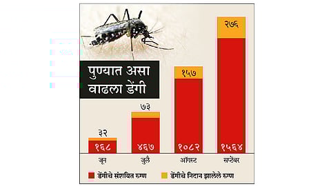 शहरात जानेवारी ते सप्टेंबर या कालावधीत डेंगीच्या तीन हजार ४९० संशयित रुग्णांची नोंद झाली आहे. त्यापैकी जून ते सप्टेंबर या कालावधीत तीन हजार २८१ डेंगीचे संशयित रुग्ण आढळले आहेत.