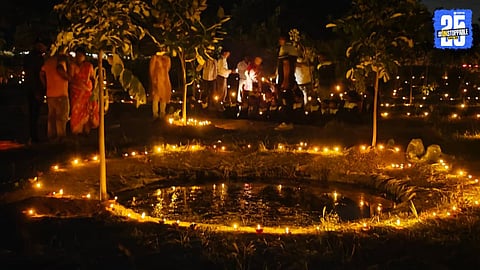 Vaduj’s Oxygen Park glows with 400 eco-friendly water lamps during a sustainable Diwali celebration, inspiring community awareness.