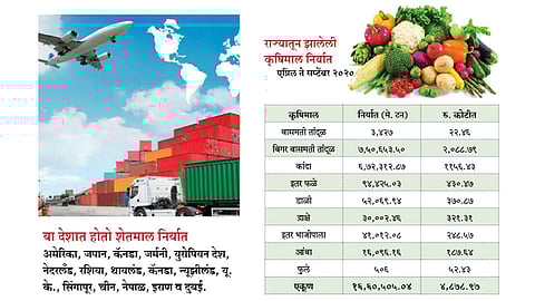 पुणे - कोरोनामुळे जगभरात लॉकडाउन केल्याने त्याचा परिणाम सर्वच क्षेत्रांवर झाला. परंतु, लॉकडाउन आणि अनेक गोष्टींवर निर्बंध असूनही राज्य कृषी पणन मंडळाने ४४ निर्यात सुविधा केंद्रांवरून विविध देशांत भरघोस कृषिमाल निर्यात केला. राज्यातून एप्रिल ते सप्टेंबर या कालावधीत तब्बल १६ लाखांहून अधिक मेट्रिक टन शेतमालाची निर्यात केली, तर ४८७८.९७ कोटी रुपयांचा माल निर्यात केला.