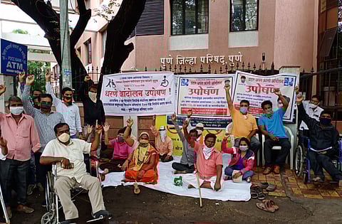 पुणे : जिल्ह्यातील सर्व ग्रामपंचायतींमध्ये दिव्यांगासाठी पाच टक्के निधी राखीव असूनही तो खर्च केला जात नाही. यापैकी निम्म्या निधीवर ग्रामपंचायतींकडून डल्ला मारला जात असल्याचा आरोप प्रहार दिव्यांग कल्याण आंदोलन या संघटनेने केला आहे. हा हक्काचा निधी त्वरीत मिळावा, या मागणीसाठी संघटनेच्यावतीने मंगळवारी (ता.११) जिल्हा परिषद मुख्यालयासमोर लाक्षणिक उपोषण करण्यात आले.