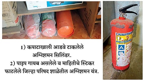 नियमानुसार या यंत्रांमधील गॅस अकरा महिन्यांनी नव्याने भरणे आवश्यक असते; परंतु बहुतांशी शाळांतील यंत्र रिफिलिंग वेळेवर केले जात नसल्याचे दिसून येते. आग लागल्यानंतर यंत्र कसे हाताळावे, याचे शाळेत असलेल्या प्रत्येक कर्मचाऱ्यांना प्रशिक्षण देणे बंधनकारक आहे. मात्र, प्रत्येक शाळेतील एकाच शिक्षकाला प्रशिक्षण दिले आहे. प्रशिक्षण घेतलेल्या शिक्षकांनाही अग्निशामक यंत्र कसे हाताळावे, याची माहिती व्यवस्थित सांगता येत नाही; तसेच पोषण आहार शिजविणाऱ्या महिलांनाही हे यंत्र वापरायची माहिती नाही. अग्निशामक यंत्र भिंतीवर उभ्या स्थितीत ठेवले पाहिजे, मात्र अनेक शाळांत ते कपाटाखाली, अडगळीत व टेबलामागे ठेवलेले आढळते. अनेक यंत्रांवर असलेले माहितीचे स्टिकर गायब, तर काही खराब झाले असून त्यावरील माहिती वाचता येत नाही; तर काही यंत्राचे पाइप गायब आहेत.