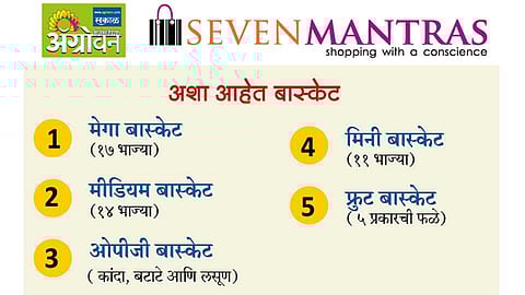 कोरोना रुग्णांची संख्या वाढत असल्याने भाजीपाला खरेदीसाठी बाहेर जाण्याचा धोका नको म्हणून नागरिकांनी आता शनिवारी ही भाजीपाला व फळे घरपोच पोहोचवण्याची मागणी केली आहे. त्यामुळे येत्या शनिवारी आणि रविवारीही डिलिव्हरी दिली जाणार आहे. त्यासाठी www.sevenmantras.com या वेबसाईटवर आगाऊ नोंदणी करता येणार आहे. श्रावण महिन्यात लागणाऱ्या ताज्या भाज्या व फळे पुरवण्यावर या उपक्रमात भर देण्यात आला आहे. या हंगामातील तसेच काही विदेशी फळे ही फळांच्या बास्केटमध्ये पुरवली जात आहेत.