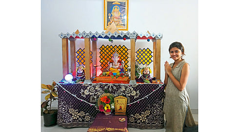 पर्यावरणपूरक बाप्पा व गौराईच्या मूर्तीची प्रतिष्ठापना तिने घरामध्ये केली आहे.