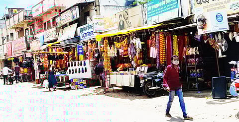 दरम्यान, स्वस्तात, विद्युत रोषणाई असल्याने बाजारात चायना मालाला मागणी वाढली आहे. परंतु, बाजारात इंडियन माल मोठ्या प्रमाणावर असल्याने यंदा साहित्यांचे दर वाढले आहेत. घरगुती गणपतीसाठी कमी प्रमाणात साहित्य खरेदी केले जात आहे. सार्वजनिक गणेशोत्सव मंडळांचा सार्वजनिक उत्सव साजरा होत नसल्याचा परिणाम व्यवसायावर झाला आहे. बाजारात किरकोळ प्रमाणात ग्राहक खरेदीसाठी येत आहेत. त्यावर विक्रेत्यांचा उदरनिर्वाह चालू असल्याने पुन्हा निर्बंध लावू नयेत, अशी मागणी व्यावसायिक करीत आहेत.