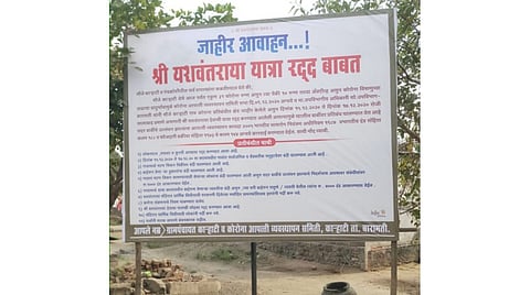 उत्सव काळात बाहेरून येणारे भाविक, दुकानदार, छोटेमोठे व्यवसायिक व पाहुण्यांना बंदी घालण्यात आली आहे. त्यामुळे यंदा कोरोना विषयक सरकारी सर्व नियमांचे पालन करून केवळ धार्मिक कार्यक्रम होणार आहेत. कुस्त्यांचा फड यंदा भरणार नाही. लोकनाट्य होणार नाही. त्यामुळे बाहेर गावाहून येणारे भाविक, पाहूणे मंडळी व विविध व्यावसायिकांनी गावात येऊ नये असे अवाहन करणारे फलक गावच्या प्रमुख चौकात लावण्यात आले आहेत.