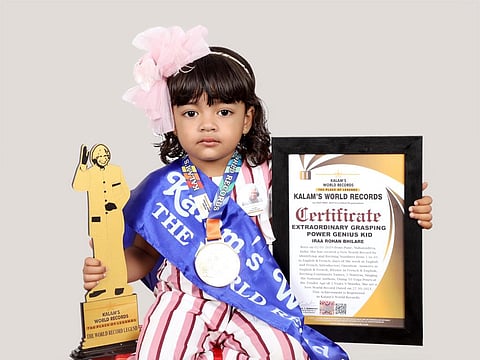 पुणे : ज्या वयात मुलांना मातृभाषा देखील व्यवस्थित बोलता येत नाही, त्याच वयात इंग्रजी व फ्रेंच भाषेत अंक, आठवड्यातील दिवस, स्वतःबद्दल प्रश्न -उत्तरं, कविता, विविध संस्कृत मंत्र, राष्ट्रगीत, खंडांची नावे सांगत अवघ्या तीन वर्षांच्या इरा रोहन भिलारे हीने सर्वांचे लक्ष वेधले आहे. तिच्या या हुशारीमुळे तिच्या नावाची अल्पावधीतच ‘इंडिया बुक ऑफ रेकॉर्ड्स आणि ‘कलाम वर्ल्ड रेकॉर्ड’२०२१ मध्ये नोंद करण्यात आली आहे.