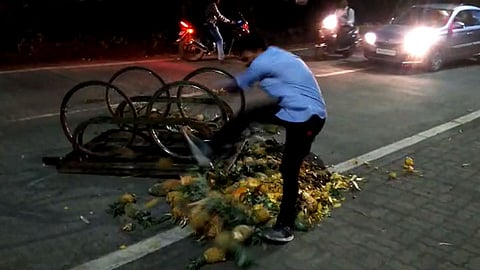 रस्त्यावरुन घरी निघालेल्या त्या फळविक्रेत्यावर महापालिकेच्या विभागाने कारवाई करण्यासाठी त्याच्या गाडीतील साहित्य उचलायला सुरुवात केल्याने त्या तरुणाचा संताप अनावर झाला. कारवाईला विरोध करत त्याने आरडाओरडा सुरू केला. जोरात आक्रोश करत, डोके आपटून घेत त्याने स्वतःला दुखापत करुन घेतली.
