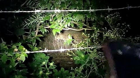 पारगाव येथील भीमाशंकर सहकारी साखर कारखान्याच्या कर्मचारी वसाहतीजवळ आज गुरुवारी पहाटे दोन वाजण्याच्या सुमारास सुरक्षा कर्मचारी सागर हिंगे,आविनाश गावडे, अविनाश धायबर व विलास बढे हे गस्तीवर असताना त्यांना बिबट्याच्या डरकाळीचा आवाज आला त्यांनी बॅटरीच्या उजेडात पाहिल्यावर बिबट्या झाडीत लपलेला दिसला सागर हिंगे यांनी बिबट्याचे मोबाईल चित्रीकरण केले या सर्वांनी दगडी फेकून बिबट्याला पळवून लावले