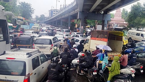 पुणे : आठवड्याच्या पहिल्याच दिवशी पुणेकरांना भरपावसात वाहतूक कोंडीतून वाट काढवी लागत आहे. शनिवार, रविवारच्या सुटटीत घरात बसून पावसाचा आनंद घेणाऱ्या पुणेकरांना सोमवारी (ता.8) वाहतूक कोंडीला तोंड द्यावे लागत आहे.