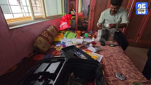 Police inspecting the flat of a retired employee in Narayangaon after valuables worth ₹11 lakh were stolen; locals demand stronger security in Warulwadi area.