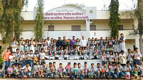 वालचंदनगर (पुणे) : चिवू,काऊ नो या...चारा खावा...पाणी प्या... अन् भुर्रु उडून जावा...ही साद घातली आहे, बोराटवाडी (ता.इंदापूर) येथील लोकनेते शहाजीराव पाटील माध्यमिक व उच्च माध्यमिक विद्यालयातील विद्यार्थ्यांनी... येथील विद्यालयातील सव्वाशे विद्यार्थ्यांनी पक्षांना चारा खाण्यासाठी व पाणी पिण्यासाठी भांडी तयार केली असून शाळेच्या व विद्यार्थ्यांनी घराच्या परीसरामध्ये झाडांना लावली आहे.