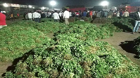 नारायणगाव उपबाजारात रात्री कोथिंबीर व मेथीच्या चार लाख जुड्यांची आवक झाली. कोथिंबिरीच्या जुडीला सहा ते सात रुपये; तर मेथीच्या जुडीला तीन ते चार रुपये भाव मिळाला. नोव्हेंबर महिन्यात कोथिंबिरीच्या जुडीला सरासरी पन्नास ते साठ रुपये, तर मेथीच्या जुडीला वीस ते पंचवीस रुपये भाव मिळाला होता. 9 नोव्हेंबर रोजी झालेल्या लिलावात कोथिंबीर जुडीला उच्चांकी ऐंशी रुपये ते नव्वद रुपयांदरम्यान भाव मिळाला होता.