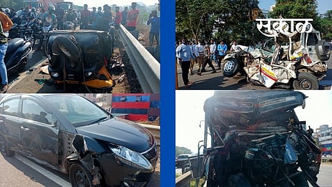 तर कात्रज बोगद्यकडून आलेला एक ट्रक भूमकर पुलावरुन खाली कोसळला. या अपघातामुळे संपूर्ण महामार्गावर वाहतूक कोंडी झाली. तर पुढे वाहतूक कोंडी झाली असताना दोन ट्रक भरधाव वेगात वाहतूक कोंडीत वाहनांना धडकले.
