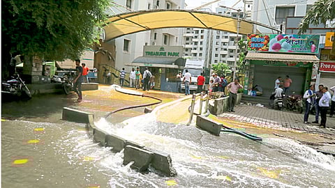 पाणी काढण्यासाठी सोसायटीच्या सभासदांनी; तसेच बांधकाम व्यावसायिकाने विद्युत मोटारी लावल्या आहेत. गुरुवारी सकाळपासून मोटारी सुरू आहेत. तीस तासांत ७५ टक्के पाणी काढण्यात यश आल्याचे रहिवाशांनी सांगितले.