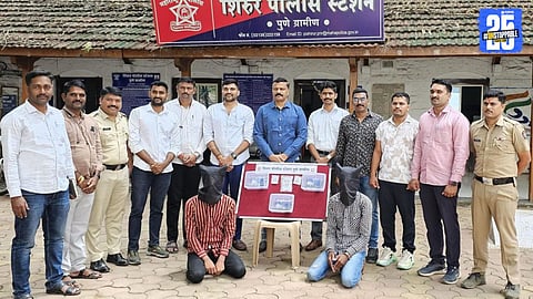 शिरूर : शिरूर - पाबळ रस्त्यावरील आमदाबाद फाटा (ता. शिरूर) परिसरात पोलिसांनी दोघांना पकडून त्यांच्याकडून तीन गावठी पिस्तुले आणि दहा जिवंत काडतूसे जप्त केली. गणेशोत्सवाच्या पार्श्वभूमीवर काल रात्री शिरूर पोलिसांनी केलेल्या या कारवाईने परिसरात खळबळ उडाली.