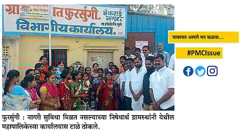फुरसुंगी गाव पालिकेत घेताना गावाला तातडीने पाणी व अन्य नागरी सुविधा दिल्या जातील, असे आश्वासन पालिकेने दिले होते. सुविधांच्या मागणीसाठी ग्रामस्थांच्या पालिकेबरोबर अनेक बैठका झाल्या मात्र आश्वासनानंतरही पाणी, आरोग्य, स्वच्छता आणि अन्य महत्त्वाच्या नागरी समस्या सुटत नसल्याने संतप्त झालेल्या ग्रामस्थांनी फुरसुंगी गावातील तसेच भेकराईनगर येथील पालिकेच्या विभागीय क्षेत्रीय कार्यालयाला ‘टाळे ठोको’ आंदोलन करत ही कार्यालये कुलूप लावून बंद करीत महापालिकेचा निषेध केला. अर्चना कामठे, दिनकर हरपळे, प्रवीण कामठे, रोहिणी राऊत, रणजित रासकर, राजाभाऊ सूर्यवंशी, विशाल हरपळे, उषा ढोरे, संजय हरपळे, किरण सरोदे आदींसह ग्रामस्थांनी आंदोलन केले.