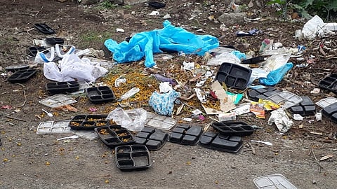 बालेवाडी (पुणे) : कोरोनाने जगभर थैमान घातले असून पुण्यातही दिवसाला हजारो रुग्ण सापडत आहेत. त्यामुळे कोरोनाशी मुकाबला करण्यासाठी प्रशासनाकडून युद्ध पातळीवर वेगवेगळ्या उपाययोजना राबवल्या जात आहेत, असे असताना मुंबई- बंगळूर महामार्गाजवळ बालेवाडी येथील कचरा विलगीकरण केंद्राजवळ व सदानंद हॉटेल जवळील रस्त्यावर कोरोना रुग्णांवर उपचार करत असताना वापरत असलेले पीपीई किट, मास्क तसेच फेस शिल्ड आणि रुग्णांना जेवणाचीसाठी दिलेली ताट रस्त्याच्या बाजूला टाकल्याचे आढळून आल्याचा धक्कादायक प्रकार समोर आला आहे. पुणे शहरात दिवसेंदिवस कोरोनाचे रुग्ण वाढत आहेत. या महिन्याभरात तर रुग्णांची संख्याही चौपट झालेली आहे. शहरांमध्ये रुग्णांना ठेवण्यासाठी रुग्णालय कमी पडू लागली आहेत, त्यामुळे या रुग्णांना विलगीकरण कक्षात ठेवणे गरजेचे असल्यामुळे महापालिकेकडून तीन महिन्या पासून बालेवाडी परिसरातील निकमार अभियांत्रिकी महाविद्यालय, बालेवाडी स्टेडियम, सदानंद रेजन्सी याठिकाणी कोरोना क्वारंटाइन सेंटर सुरू करण्यात आले आहेत.