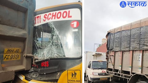 या अपघातात सहा सात वाहनांना धडक बसली. या अपघातात शाळेच्या बसला धक्का बसला पण सुदैवाने विद्यार्थ्यांना काही झाले नाही.