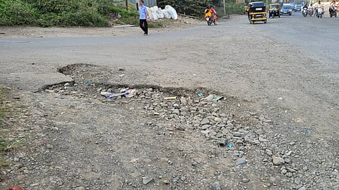 या मुख्य रस्त्यातील खड्ड्याची पावसाळ्यात खडी टाकून तात्पुरती मलमपट्टी करण्यात आली होती. आता ही खडी उखडल्यामुळे अपघात होण्याची शक्यता आहे. महापालिका आणि सार्वजनिक बांधकाम विभागाने यावर तत्काळ उपायजोना करत रस्त्याची दुरुस्ती करण्याची मागणी वाहनचालक आणि नागरिकांतून होत आहे. याबाबत सार्वजनिक बांधकाम विभागाचे शाखा अभियंता देवेन मोरे यांच्याशी संपर्क केला असता तो होऊ शकला नाही.