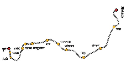 पुणे - नाशिकची (Nashik) द्राक्षे, कांदा आता अवघ्या दोन तासांत पुण्याच्या बाजारपेठ (Pune Market) मिळू शकणार आहेत. हे शक्य होणार आहे ते सेमी हायस्पीड रेल्वेमुळे. (High Speed Railway) पुणे-नाशिक या २३५ किलोमीटर लांबीच्या पट्ट्याचा चेहरा-मोहरा बदलणार आहे.