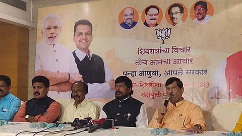 ''पुणे महापालिकेच्या निवडणुकीत जे आश्वासन दिले ते पूर्ण केले असे नाही. पण, विधानसभेत रिपाइंचे पाच आमदार निवडून येतील, त्यांचा वेगळा गट करणार आहे. राज्याच्या सत्तेत आम्हाला एक कँबीनेट, एक राज्यमंत्री, ३ विधान परिषद , ४ महामंडळे मिळणार असून यातील ३ भाजपकडून एक सेनेकडून मिळणार आहे,'' असे आश्वासन दोन्ही पक्षांनी दिल्याचा दावा आठवले यांनी केला.