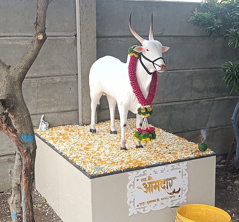 किरकटवाडी: ज्याला परिवारातील सदस्याप्रमाणे जीव लावला, जो त्याची उंची, आकर्षक शरीर यष्टी आणि पांढरा शुभ्र रंग यामुळे बघणाणाऱ्याच्या नजरेत भरत होता अशा लाडक्या 'आमदार' नावाच्या बैलाच्या निधनानंतर खडकवासला येथील बैलप्रेमी निखिल कोरडे व शंभू-बाजी गृपच्या सदस्यांनी त्याची खडकवासला धरणाच्या मागच्या बाजूला सिंहगड सृष्टी येथे असलेल्या गोठ्याच्या आवारात समाधी उभारली आहे. बैलाविषयी कृतज्ञता म्हणून अंत्यविधी, दशक्रिया विधी व तेराव्याचा विधीही करण्यात आला. यावेळी सर्व सदस्यांनी मुंडन देखील केले.