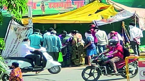 पालिकेने परवानगी फक्त ४० लोकांना दिली. मात्र, दुपटीपेक्षा अधिक विक्रेते आज रस्त्यावर पथारी मांडून भाजी विकत होते. ग्राहक आणि भाजीच्या दुकानांमध्ये कोणतेही सोशल डीस्टन्सचे पालन केले जात नव्हते. दुचाकी वाहनांचा खच रस्त्यावर होता.
