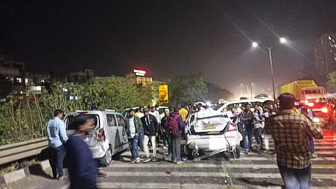 पुण्याच्या नवले ब्रिजवरील अपघाताची मुख्यमंत्री Eknath Shinde - एकनाथ संभाजी शिंदे यांनी दखल घेतली आहे. आज रात्री टँकरच्या धडकेने अनेक वाहने दुर्घटनाग्रस्त होऊन झालेल्या अपघाताविषयी मुख्यमंत्र्यांनी पोलिसांकडून माहिती घेतली आहे. हा अपघात कुणाच्या निष्काळजीपणामुळे झाला तेही तपासण्याचे निर्देश मुख्यमंत्र्यांनी दिले आहेत. तसेच अपघातातील जखमींना योग्य ते उपचार मिळण्याची व्यवस्था करण्याच्या सूचना देखील त्यांनी प्रशासनाला दिल्या आहेत. अपघातामुळे या भागात मोठ्या प्रमाणावर झालेली वाहतूक कोंडी दूर करून वाहनधारकांना त्रास होणार नाही हे पाहण्याचे निर्देश देखील त्यांनी दिले आहेत.