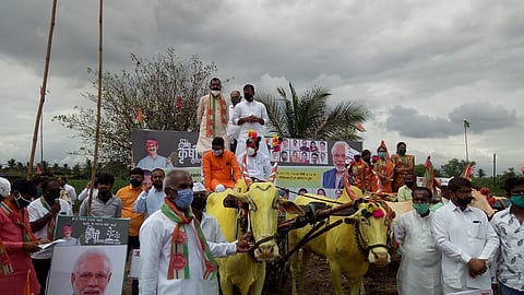 संसदेच्या अधिवेशनात तीन कृषी विधेयकांना मंजुरी देऊन, कायद्यात रुपांतर करण्याच्या केंद्र सरकारच्या निर्णयाचे स्वागत करण्यासाठी रयत क्रांती संघटना व शेतकरी संघटना यांच्या वतीने सोरतापवाडी (ता. हवेली) येथे कार्यक्रमाचे आयोजन केले होते. रयत क्रांती संघटनेने पंतप्रधान मोदी यांच्या प्रतिमेची बैलगाडीतून मिरवणूक काढून व शेतात गुढ्या उभारून निर्णयाचे स्वागत केले.