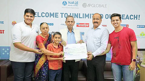 पुणे, ता. २ : मराठा चेंबर ऑफ कॉमर्स, इंडस्र्टीज ॲण्ड ॲग्रिकल्चर आणि ‘क्रेडाई’चे माजी महासंचालक प्रा. डॉ. दिवाकर अभ्यंकर यांच्या पार्थ मराठे, रुजुल व आर्यन अभ्यंकर या तीन नातवंडांनी स्वकमाईतून काही रक्कम बचत करून ‘सकाळ माध्यम समूहा’तील ‘सकाळ रिलिफ फंड’ संस्थेच्या सामाजिक उपक्रमांसाठी ५१ हजार रुपयांची देणगी दिली आहे. या वेळी डॉ. अभ्यंकर, दीपा अभ्यंकर व सकाळ रिलिफ फंडाचे विश्वस्त महेंद्र पिसाळ उपस्थित होते.