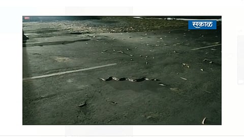 वाहन चालकांच्या लक्षात न आल्याने त्यातील एक साप दुर्दैवाने वाहनामुळे जखमी झाला. हे लक्षात आल्यानंतर तेथून जाणारे वडगाव शेरीतील अमोल खेडकर आणि त्यांच्या मित्रांनी प्रसंगावधान राखत दोन्ही बाजूंची वाहतूक तात्काळ रोखून धरली. त्यामुळे दोन्ही सापांना सुरक्षितपणे रस्ता ओलांडून जाता आले. त्यामुळे काही काळ येथे वाहतूक कोंडी झाली होती.